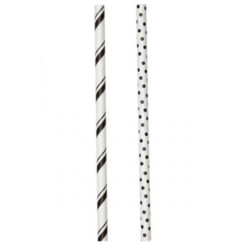Papparör - Með doppum og röndum - 30 stk - Svört