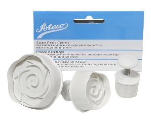 Frábær mót til þess að skera út blóm. Mótin eru með þrýstibúnaði svo það er einkar auðvelt að ná sykurmassanum eða deiginu úr mótunum. Ef þú þrýstir takkanum niður á meðan massinn er enn á borðinu kemur mynstur í sykurmassann eða deigið.