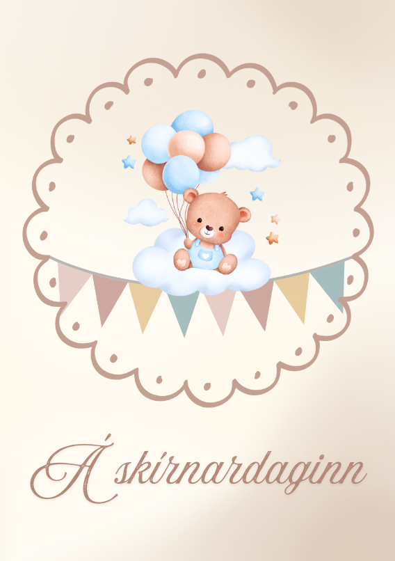 Tækifæriskort - Á skírnardaginn - Bangsi - Blátt - 17 x 12 cm