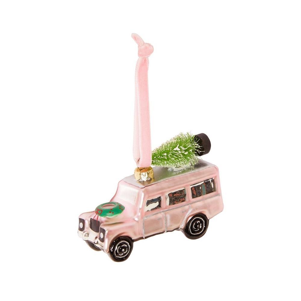 Jólaskraut - Bíll með jólatré - 10 x 7 cm - Bleikur