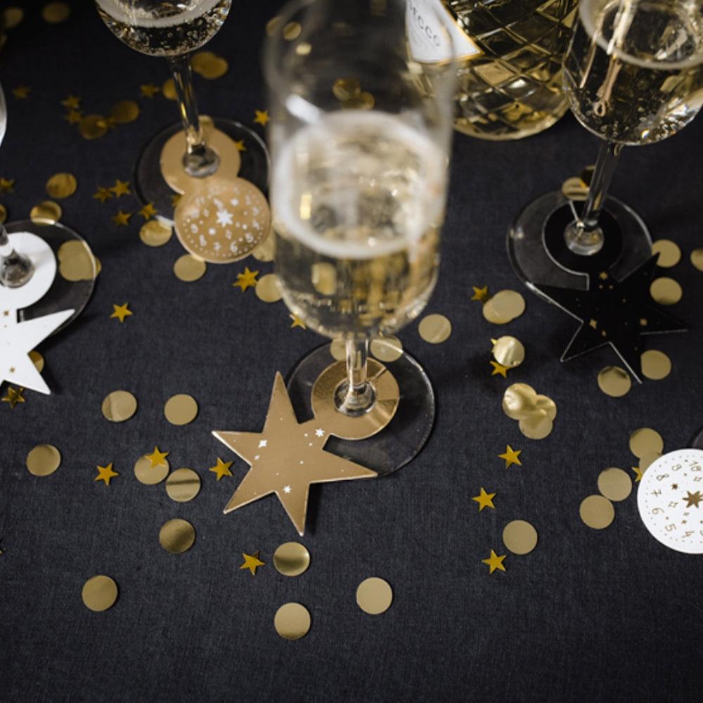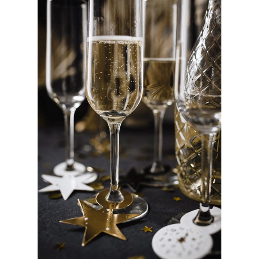 Merkispjöld fyrir vínglös - Stjörnur-Klukka - 7,5 x 9,5 cm - 6 stk