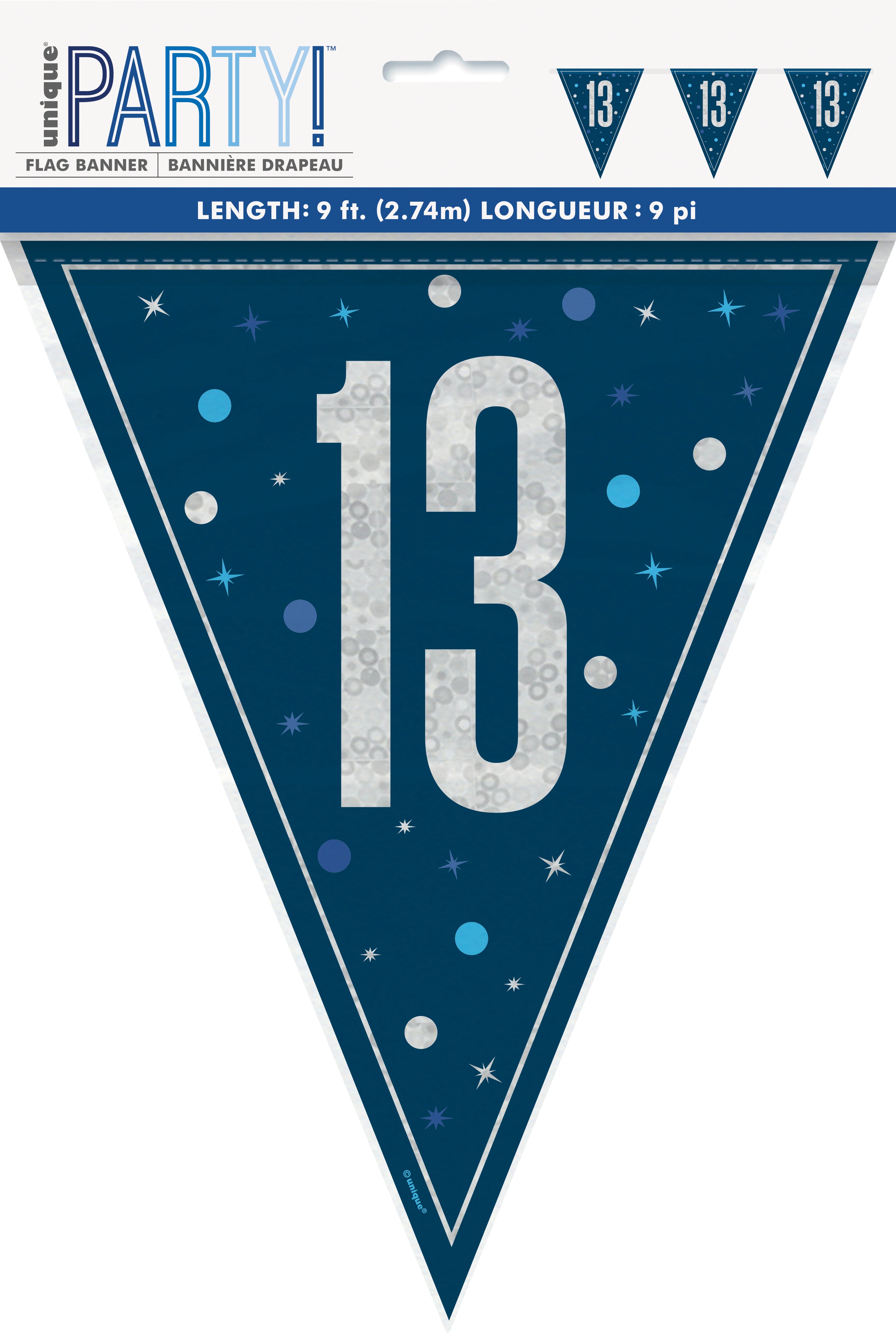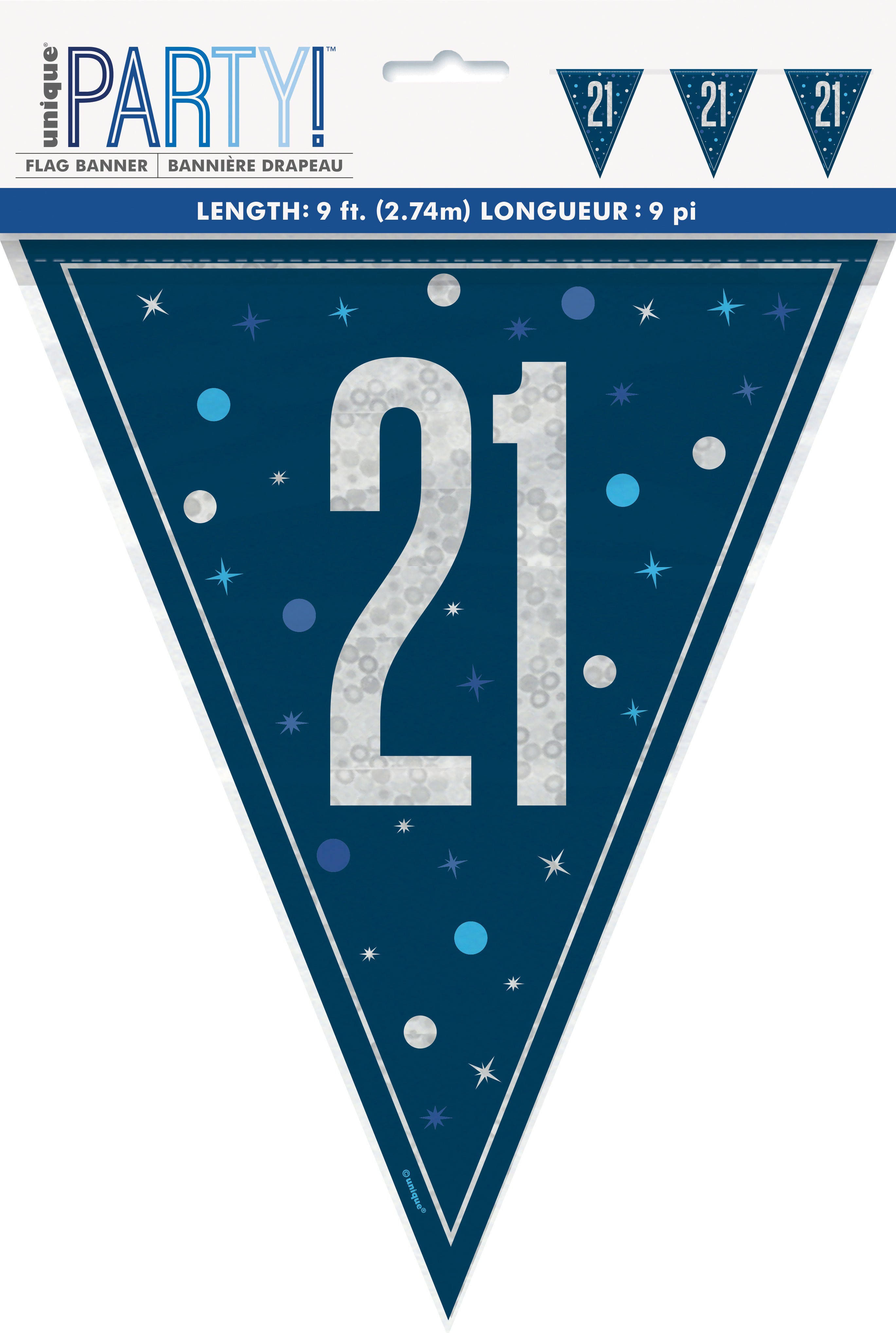 Fánalengja - Glitz - happy birthday - 2,74 m - Dökkblá