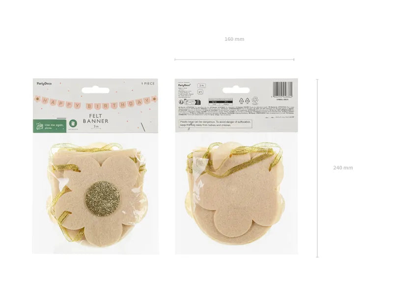 Banner - Happy Birthday Filt - Bleikur Gull- 300x12 cm