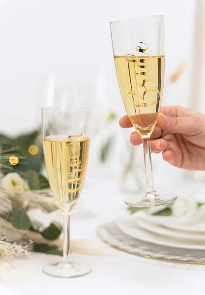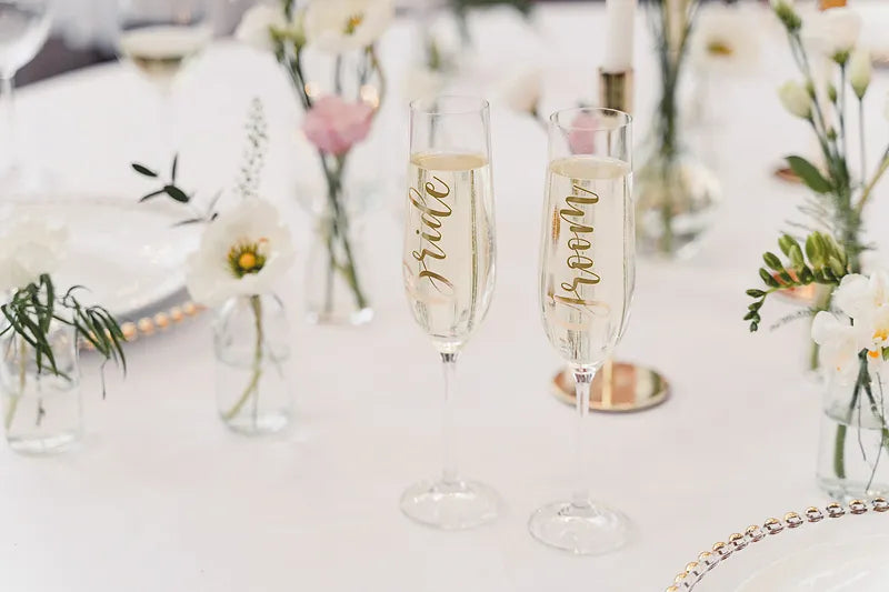 Límmiðar - Á glös - Bride & Groom - 2 stk - Gyllt