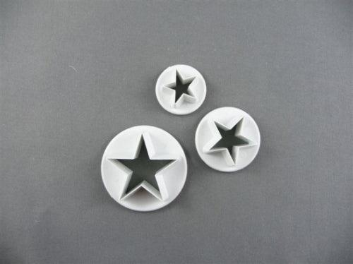 Sett með 3 stjörnumótum í mismunandi stærðum. Mótin eru úr plasti.