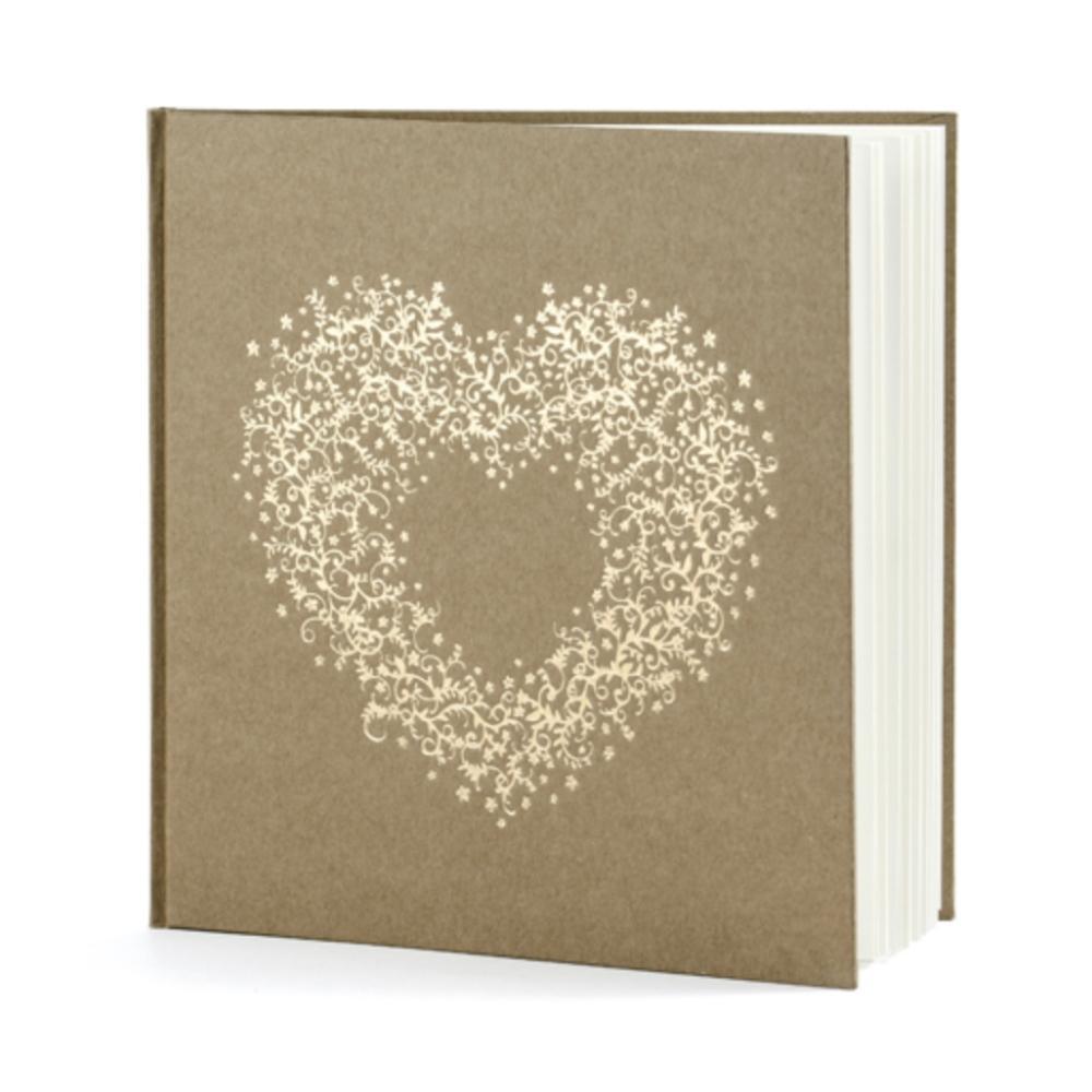 Gestabók - Brún með Gull Hjarta - 20,5 x 20,5 cm - 22 auðar síður