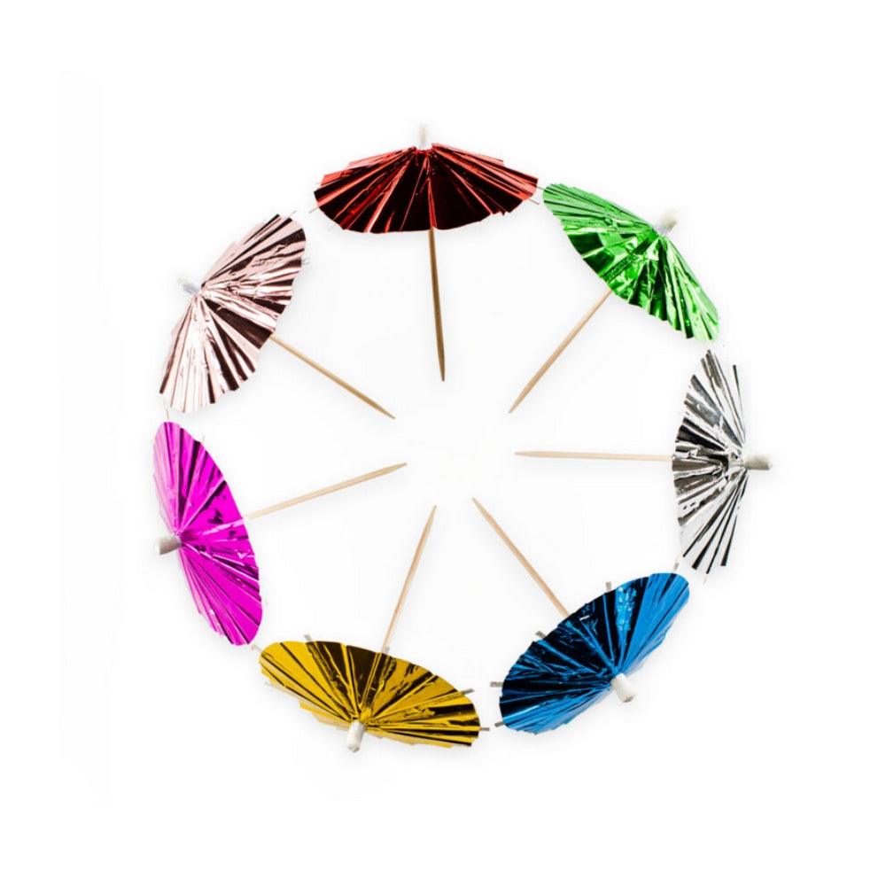 Kokteilpinnar - Sólhlífar - 10 stk - Blandaðir litir