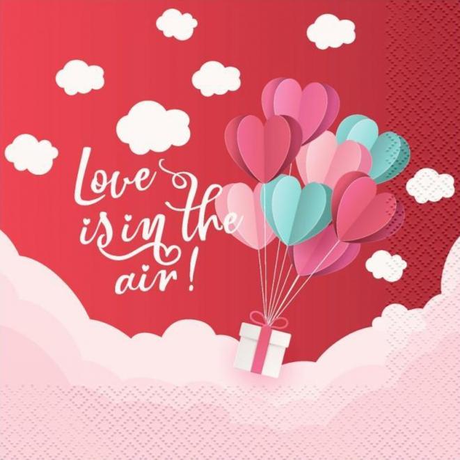 Servíettur - Love is in the Air Red - 33 x 33 cm - 20 stk