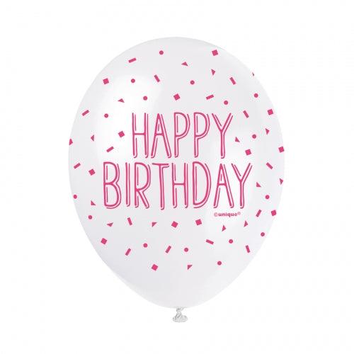 Blöðrur - HAPPY BIRTHDAY - Blandaðir litir - 30 cm - 5 stk - Bleikar
