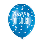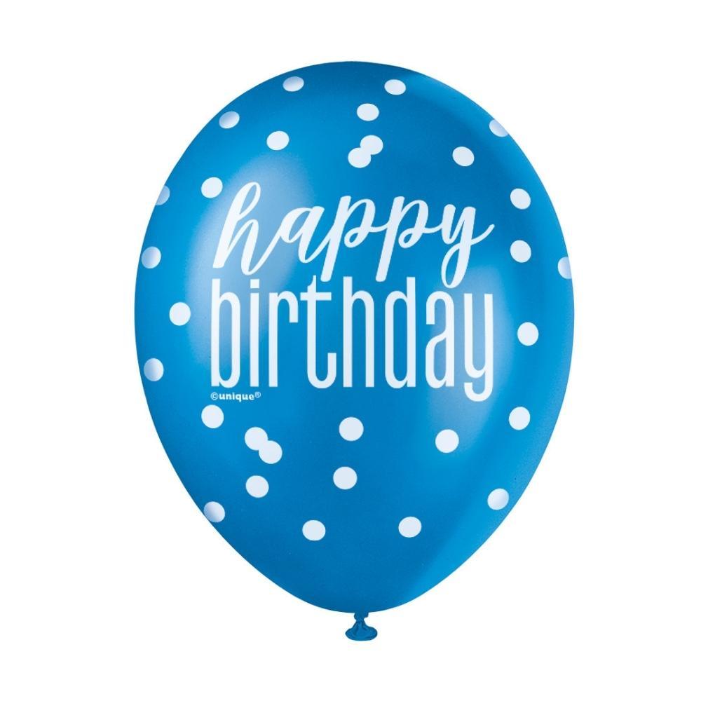 Blöðrur - happy birthday - 30 cm - 6 stk - Bláar Ljósbláar Hvítar