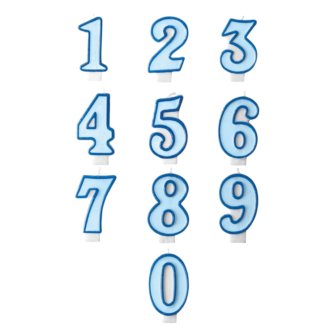 Númerakerti - Hvítt með bláu