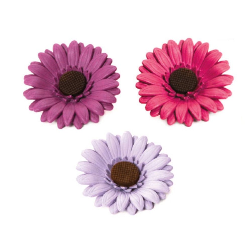 Sykurblóm - Gerbera á vír - 8 cm - 3 stk - Wisteria-Fuchsia-Violet