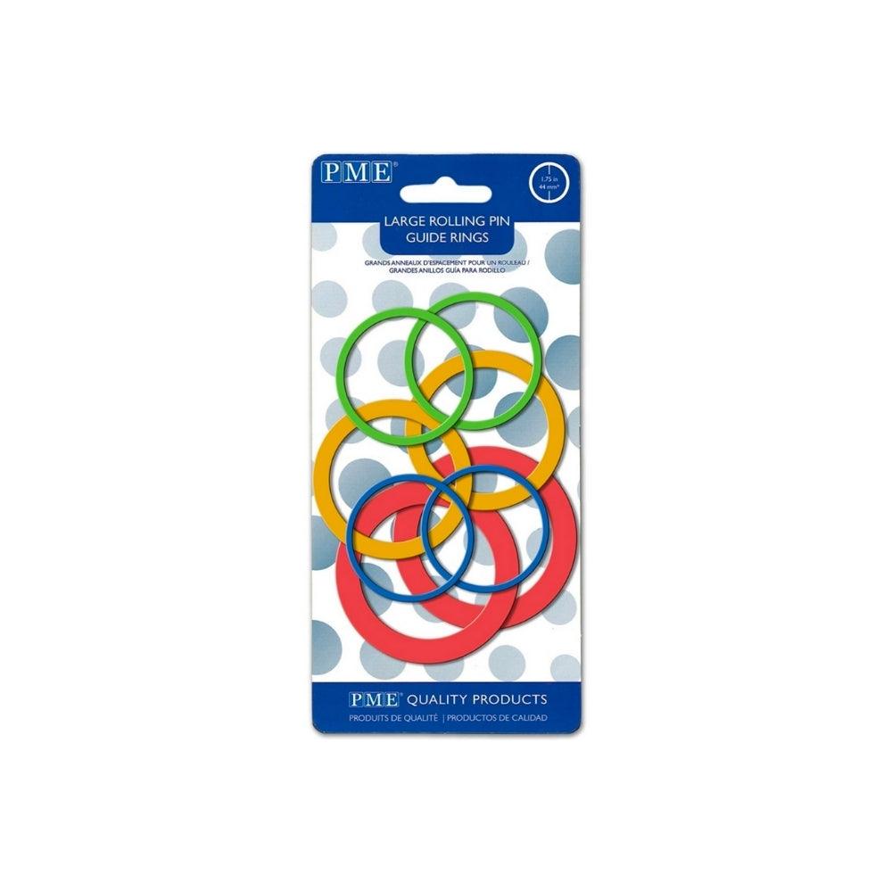 Sett með fjórum stærðum af hringjum til að ákvarða jafna þykkt á td. sykurmassa eða deigi