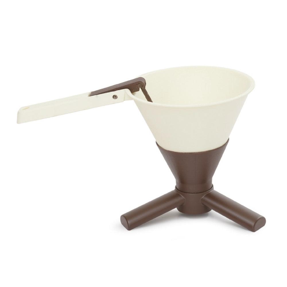 Plastic funnel and measuring strainer, excellent for the preparation of all types of preparations. Ideal for chocolate, jellies, fluid ice. The button allows you to check the amount of preparation left in the funnel.