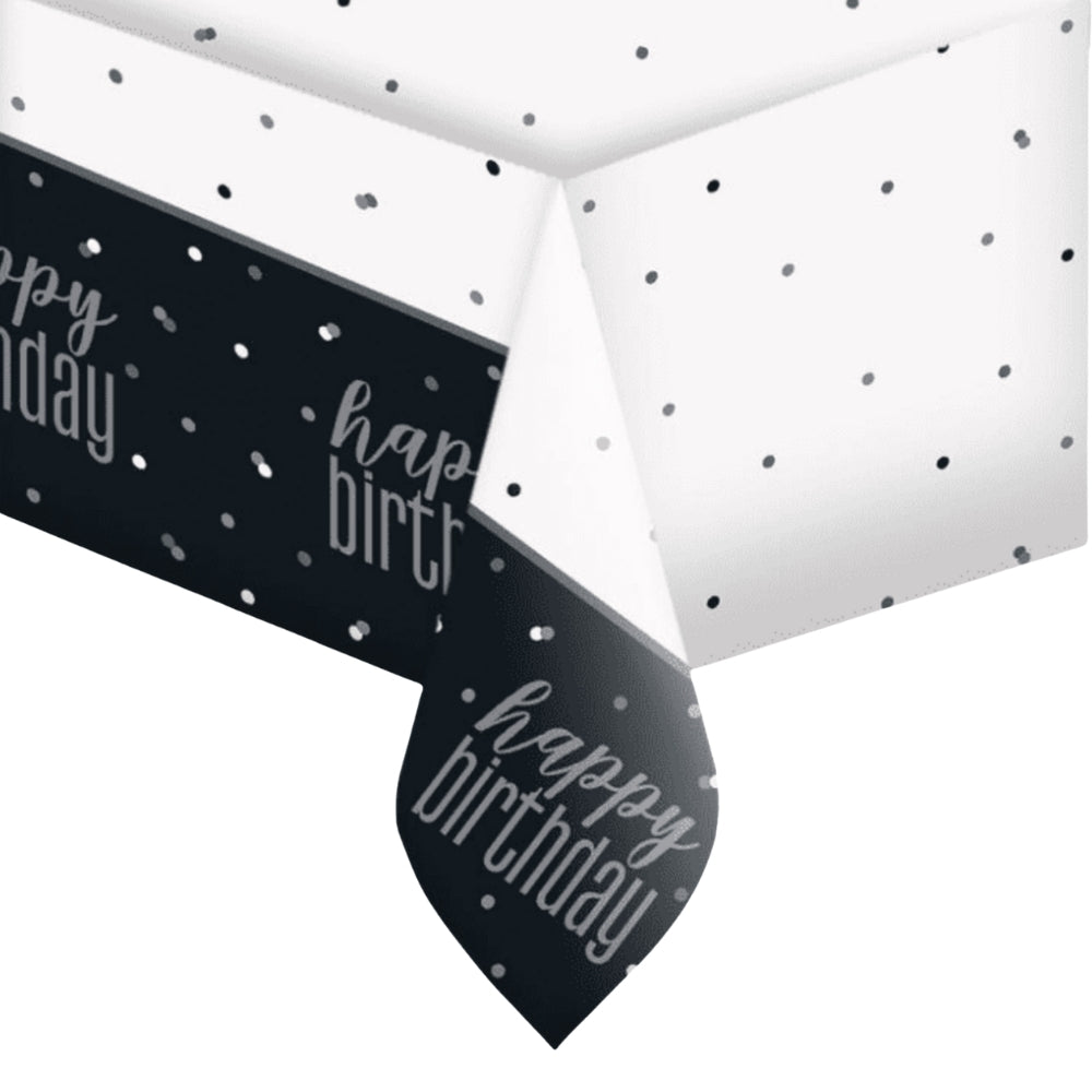 Plastdúkur - happy birthday - 137 x 213 cm - Svartur og silfur