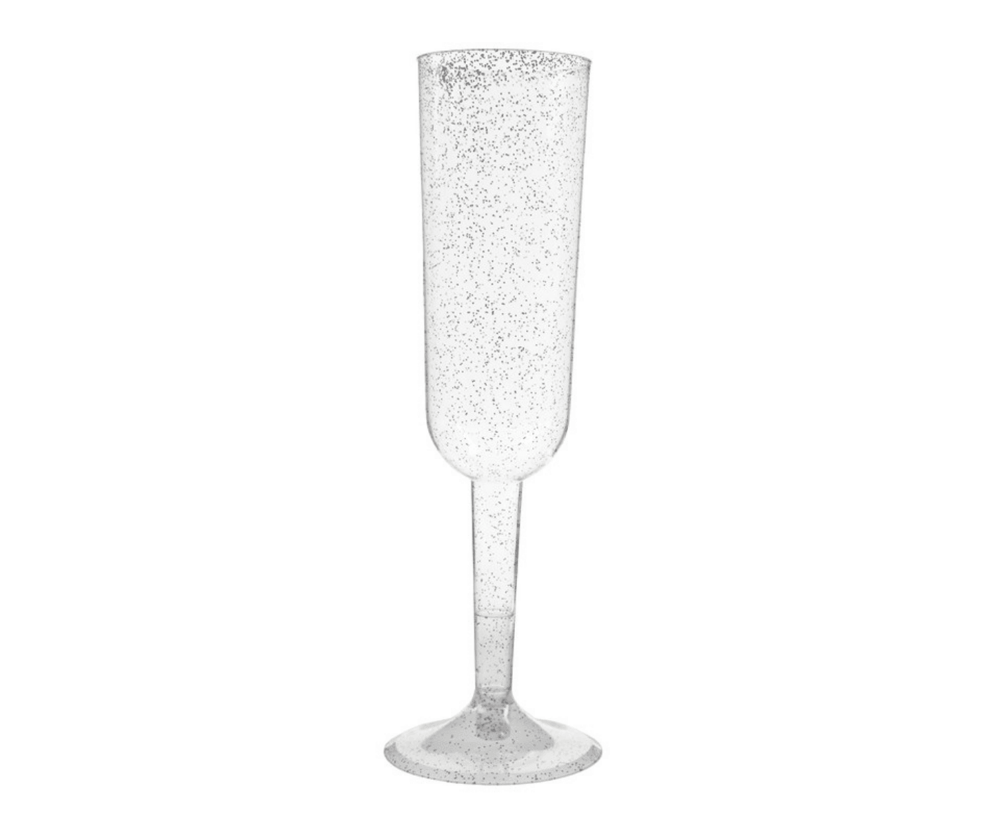 Plastglös á fæti - Kampavín - 118 ml - 4 stk - Glimmer Silfur