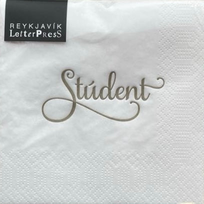 Servíettur - Stúdent - 24 x 24 cm - 20 stk - Hvítar og gull