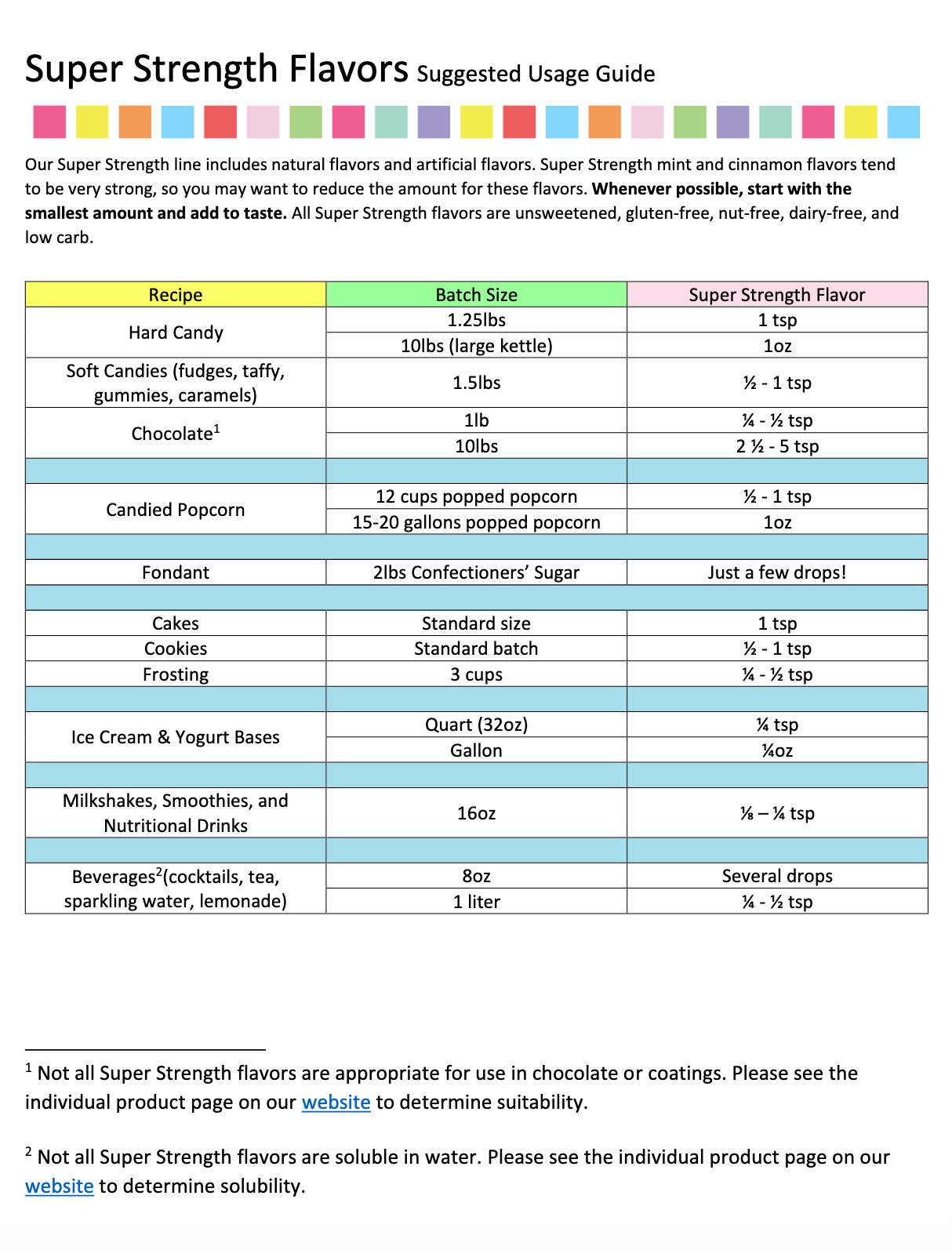 Bragðefnið er kjörið til þess að bragðbæta brjóstsykur, isomalt, súkkulaði, sykurmassa, kökubotna, krem, kökufyllingar, deig, konfektfyllingar og fleira.