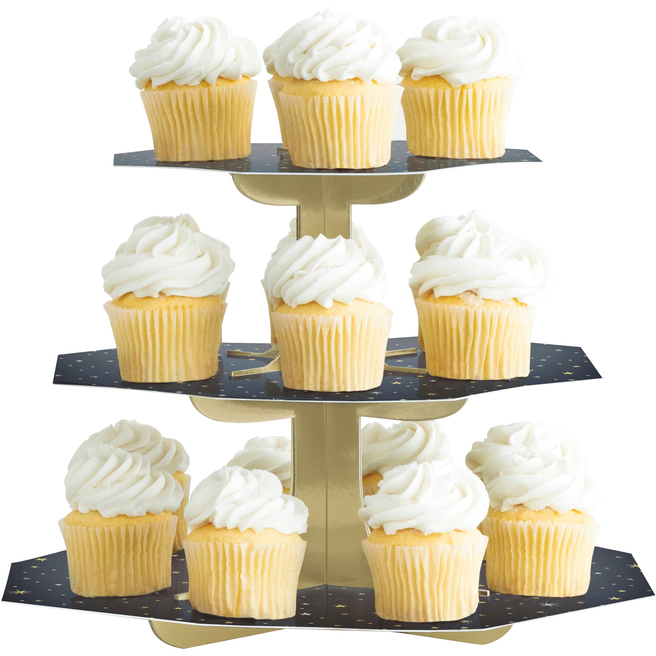 Cupcake standur - 3 hæðir - Svartur og gylltur