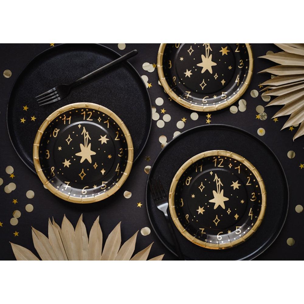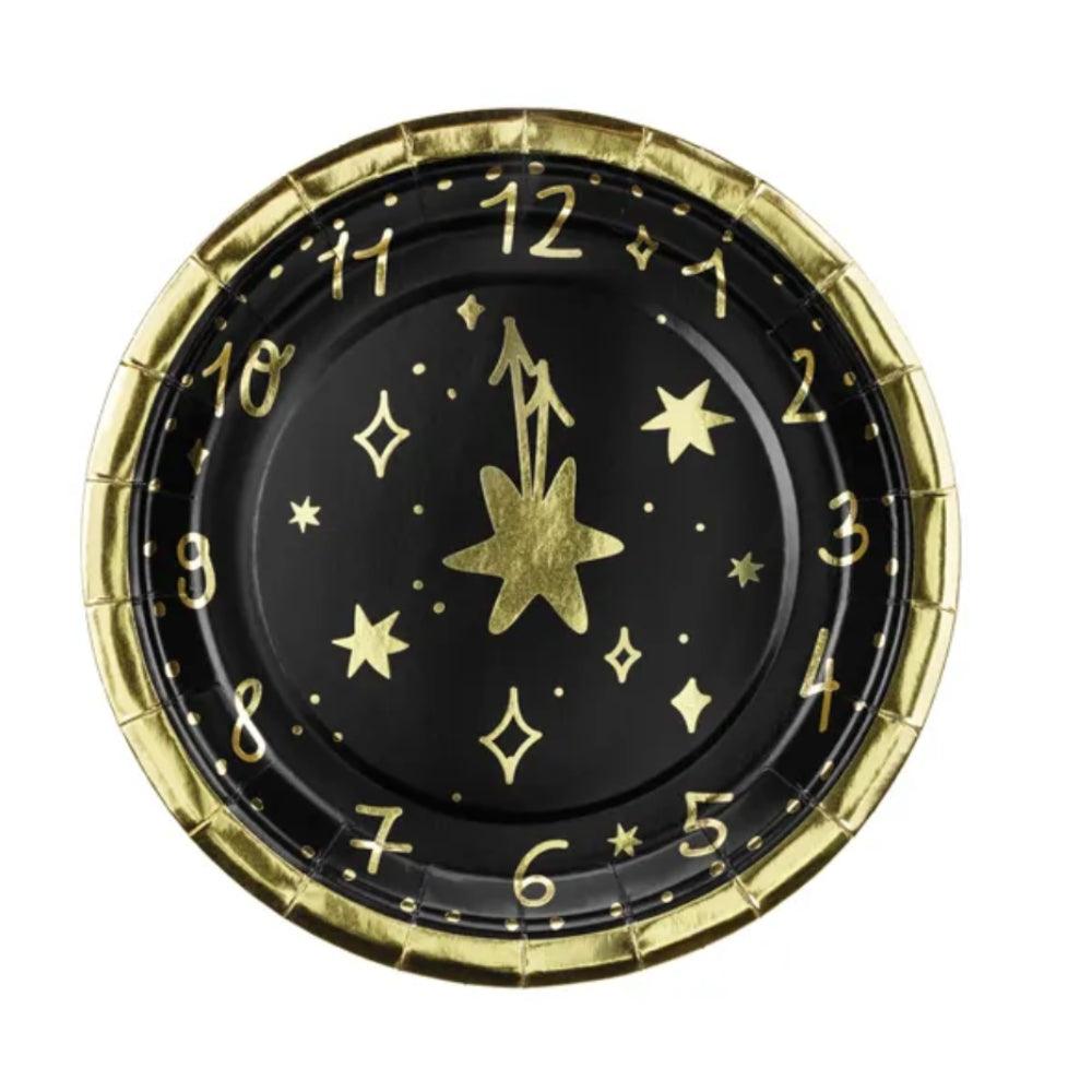 Pappadiskar - Klukkan - 18 cm - 6 stk - Svartir-Gylltir