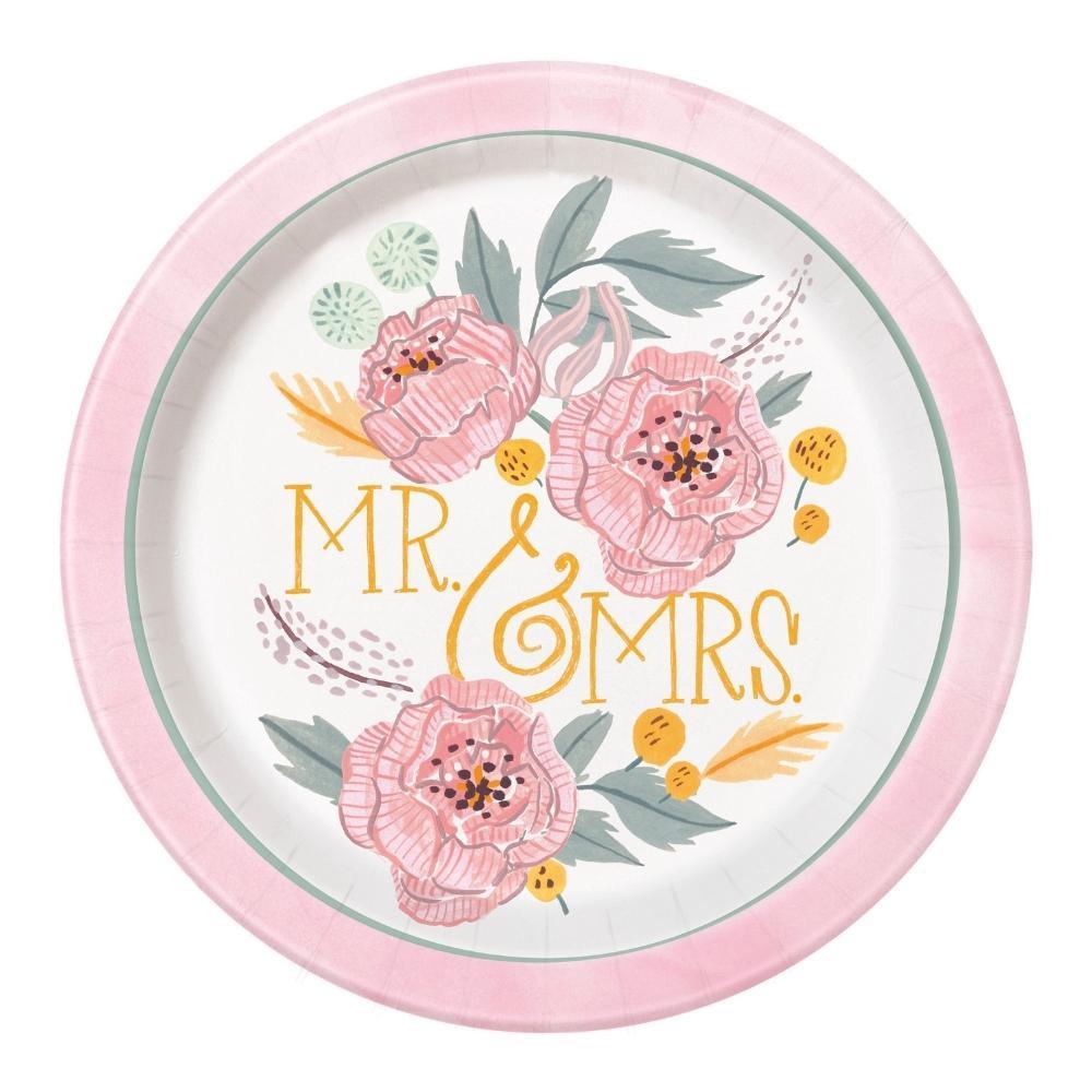 Pappadiskar - MR & MRS - Blóm - 22 cm - 8 stk
