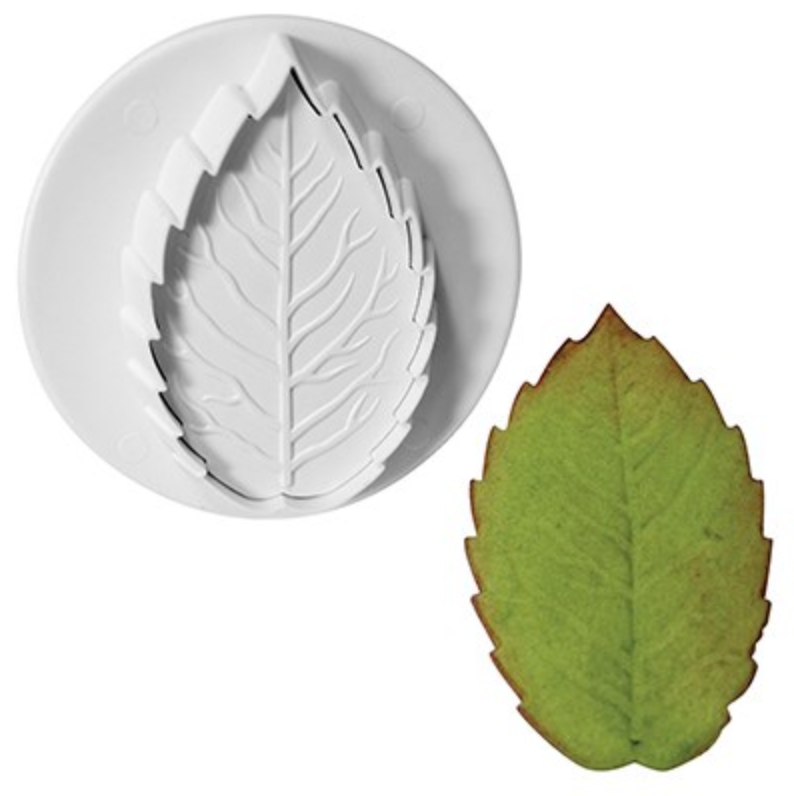 Frábært mót til þess að skera út rósalauf. Mótið er með stimpli svo það er einkar auðvelt að ná sykurmassanum eða deiginu úr mótinu. Ef þú þrýstir takkanum niður á meðan massinn er enn á borðinu kemur mynstur í sykurmassann eða deigið.