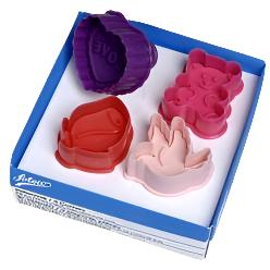 Frábær mót til þess að skera út sykurmassa, marsípan og deig. Mótin eru með þrýstibúnaði svo það er einkar auðvelt að ná sykurmassanum eða deiginu úr mótunum. Ef þú þrýstir takkanum niður á meðan massinn er enn á borðinu kemur mynstur í sykurmassann eða deigið.