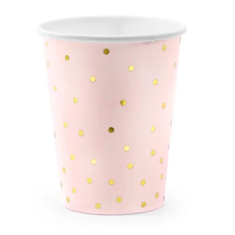 Pappaglös - Pastel - Bleik með gylltum doppum - 260 ml - 6 stk