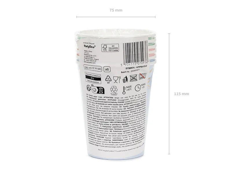 Pappaglös - Pastellitir - Með gullborða - 220 ml - 6 stk
