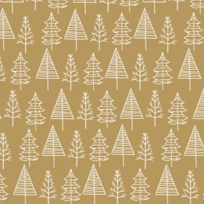 Gjafapappír - 70 x 200 cm - Jól - Gylltur með hvítum jólatrjám