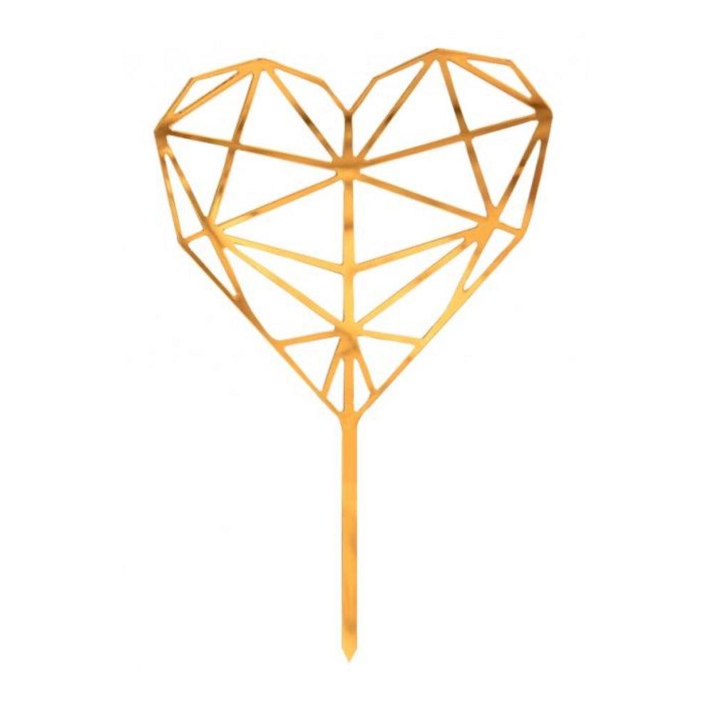Kökuskilti - Demantur - Hjarta - Gyllt - 16 x 10 cm