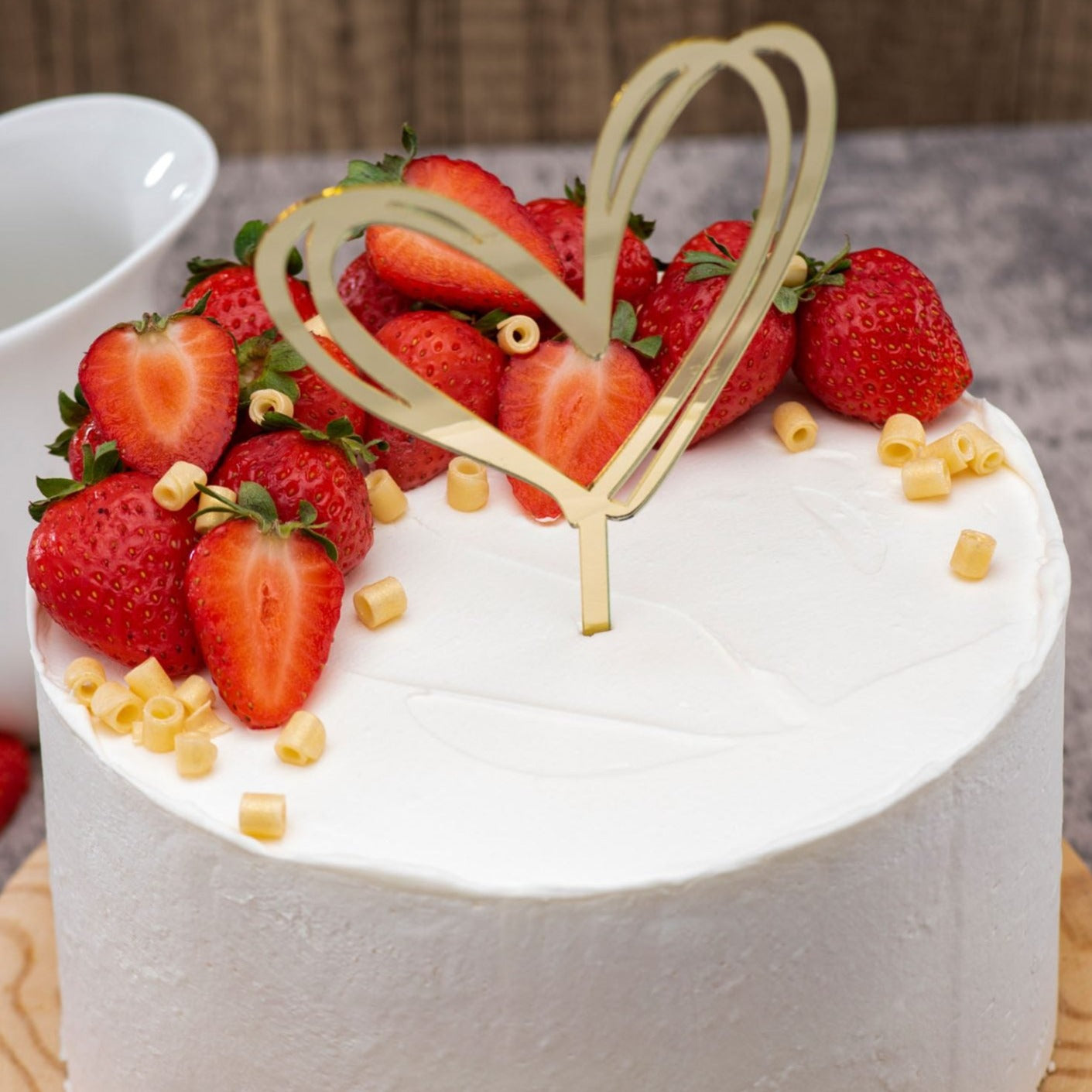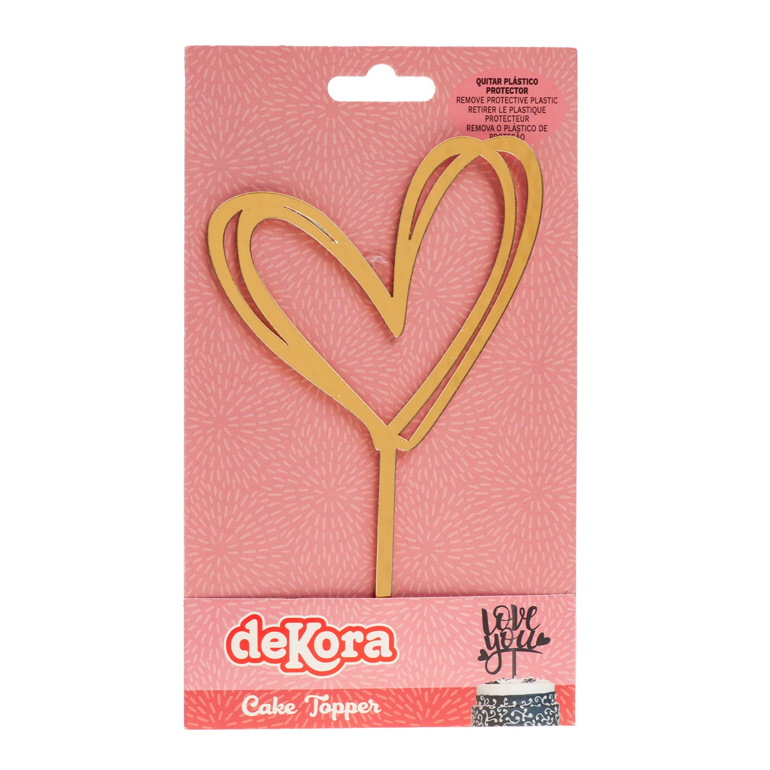 Kökuskilti - Tvöfalt hjarta - Gyllt - 10,5 x 15 cm