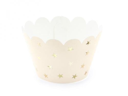 Muffinskápur - Peach og gylltar stjörnur - 6 stk