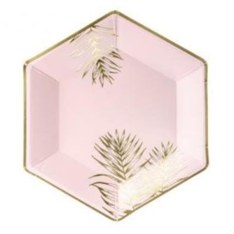Pappadiskar - Sexhyrndir - Ljósbleikir með gylltum laufum - 20 cm - 6 stk