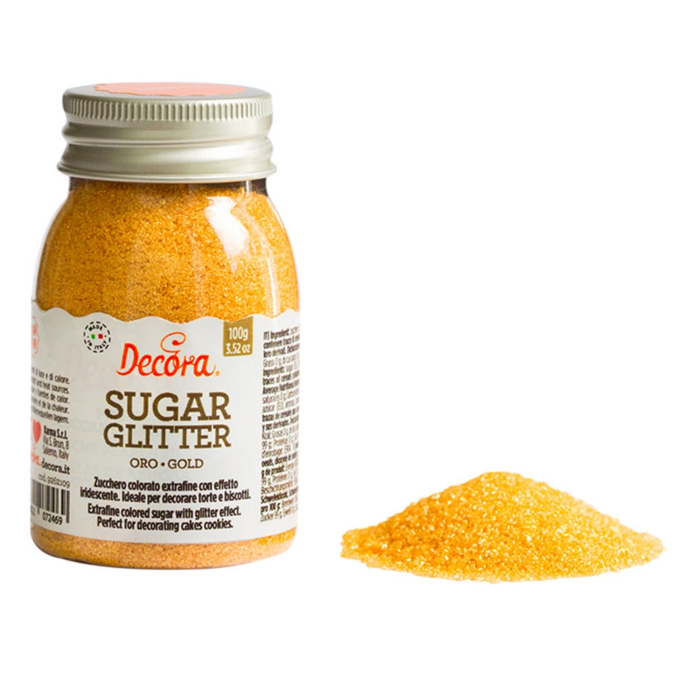 Packaging : 100 g New Formula without E171. Extra-fine, bright and with intense colors. Ideal for decorating cakes, biscuits and for making the center of the flower. Naturally extracted dyes. Gold – Ingredients : sugar (EU), flavourings, colouring: E172. Water, coating agent: E904. May contain traces of cereals containing gluten, eggs, milk, peanuts, soya, nuts and their derivatives. Average nutritional declaration per 100 g of product: Energy 1683 kJ, 396 Kcal; Fat 0 g, of which saturated 0 g; Carbohydrates 99 g, of which sugars 99 g, Protein 0 g; Salt 0 mg. Storage advice: Store in a cool, dry place, away from sunlight and heat sources. Keep the package tightly closed.