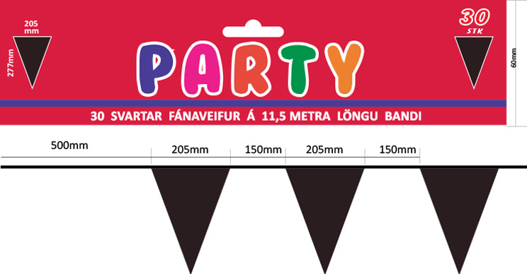 Fánalengja - Einlit - 30 fánar - 11 m - Svört