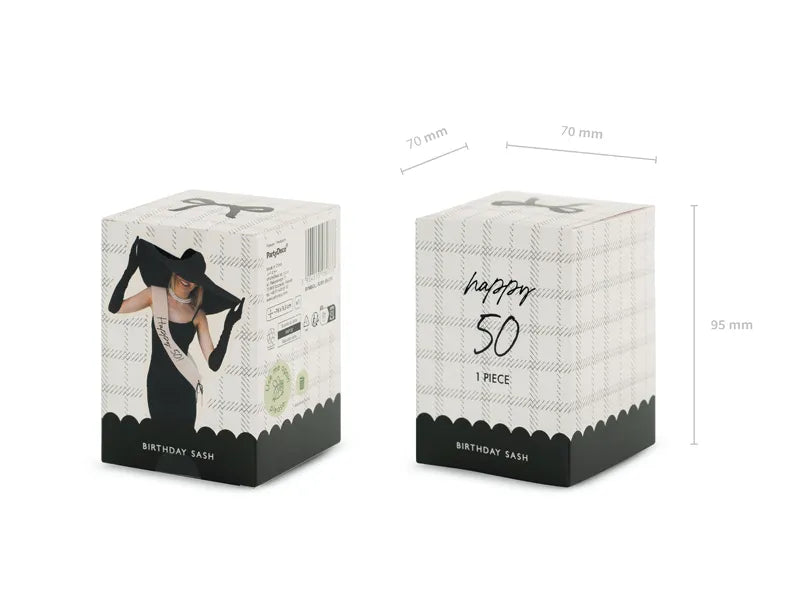 Sash-Borði - Happy 50! - 76 cm - Kremaður og Svartur