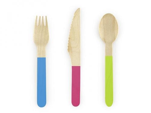 Hnífapör úr viði - Blandaðir bjartir litir - 18 stk