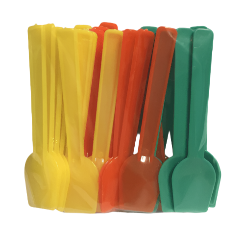 Litlar ísskeiðar úr plasti.