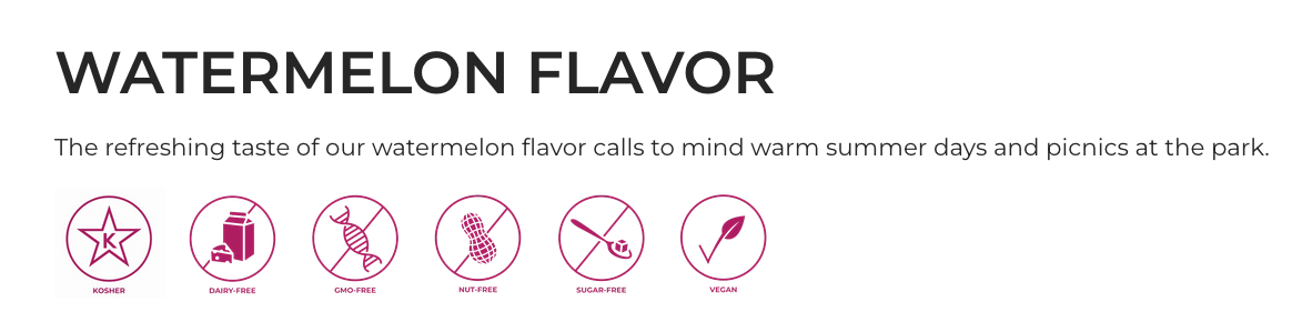 Bragðefnið er kjörið til þess að bragðbæta brjóstsykur, isomalt, súkkulaði, sykurmassa, kökubotna, krem, kökufyllingar, deig, konfektfyllingar og fleira.