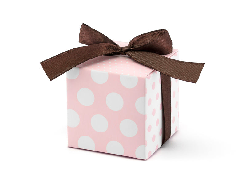 Gjafabox - Bleik doppótt með borða - 10 stk