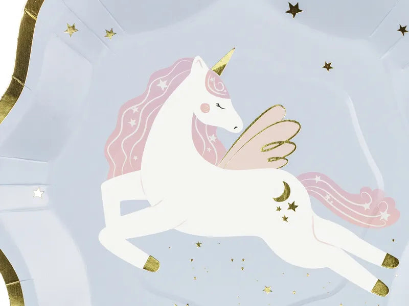 Pappadiskar - Unicorn - Ø18 cm - 6 stk - Pastel með Gyllingu