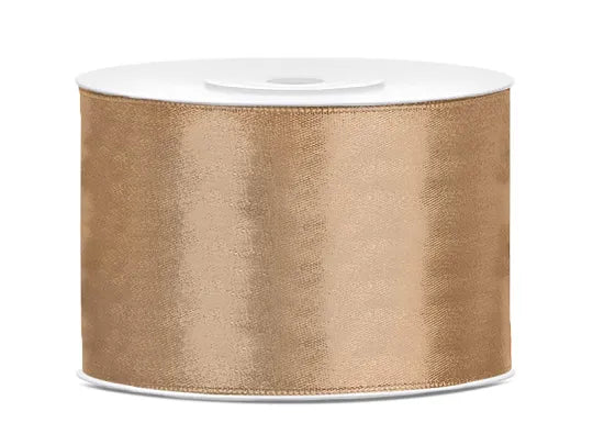 Satínborði - 50 mm - 25 m - Ljós gylltur