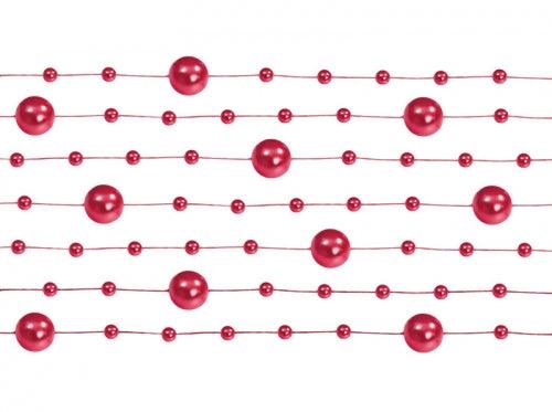 Garland með misstórum perlum - 130 cm - 5 stk - Rautt