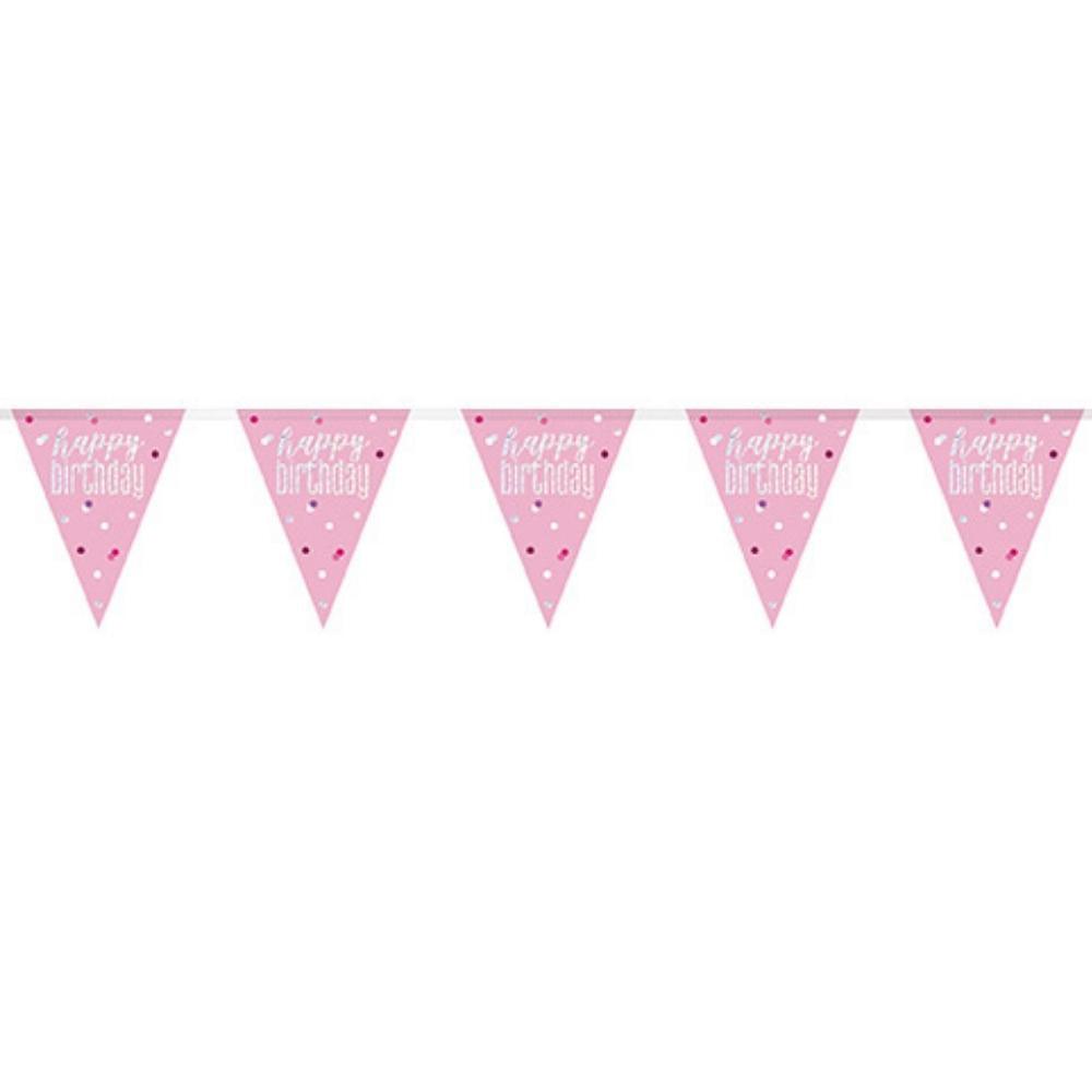 Fánalengja - happy birthday - Ljósbleik og silfur - 2,74 cm