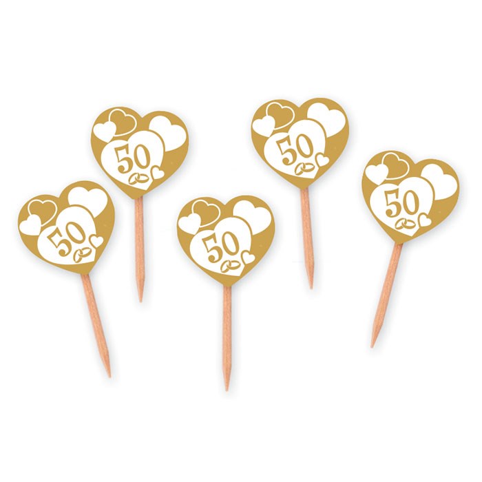 Skrautpinnar - Hjörtu Gull 50 - 4x7cm - 25stk