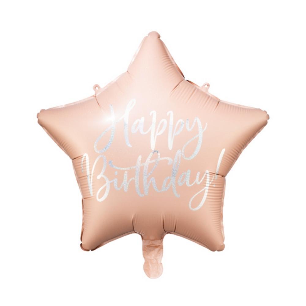 Álblaðra - Form - 40cm - Stjarna - Happy Birthday - Powder Pink Hologram