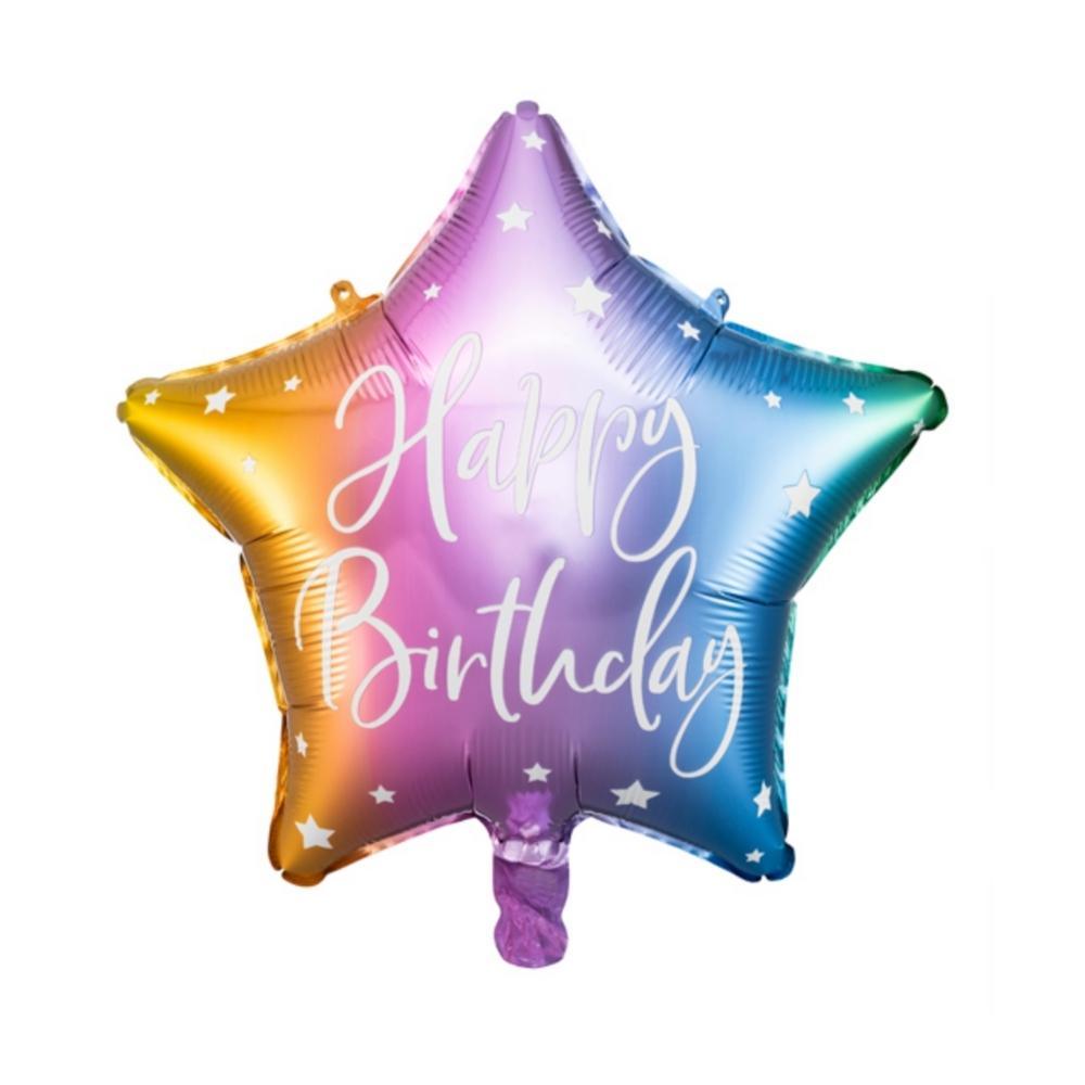 Álblaðra - Form - 40cm - Stjarna - Happy Birthday - Rainbow Pastel