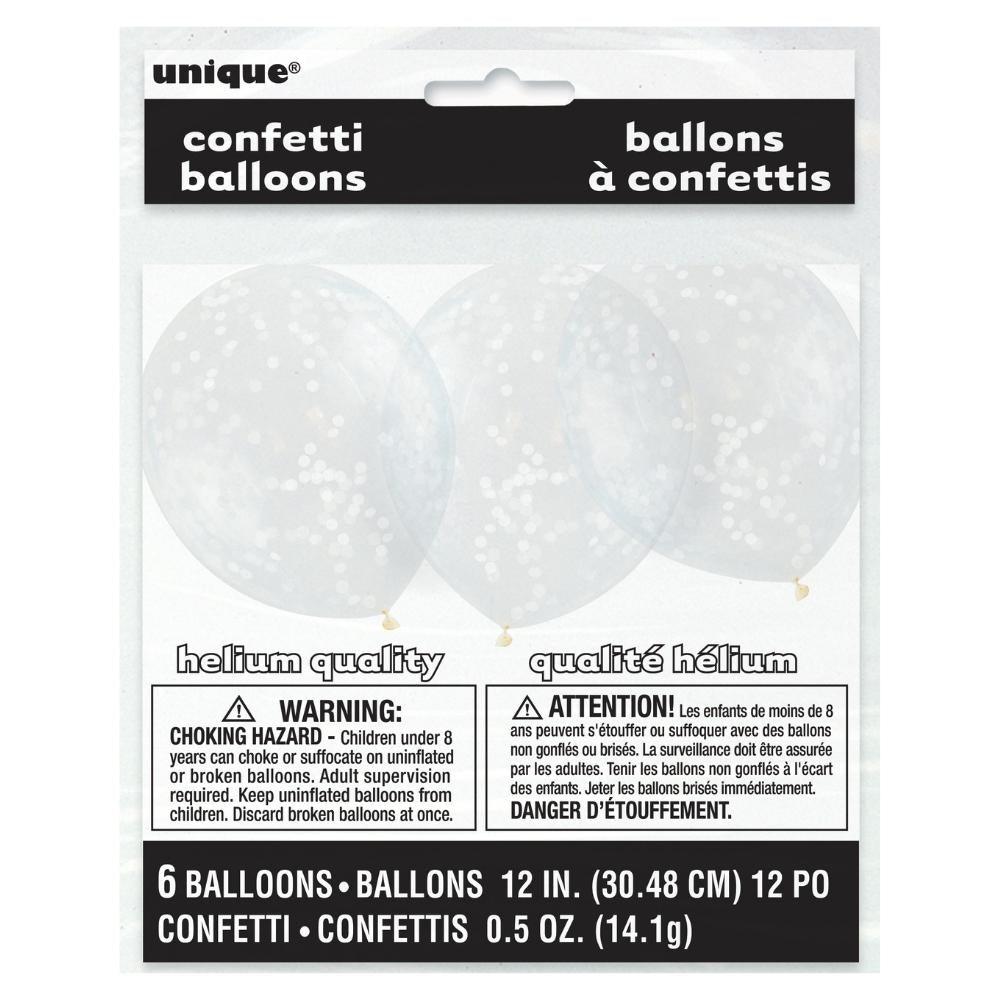 Blöðrur með confetti - Gegnsæjar - 30 cm - 6 stk - Hvítt