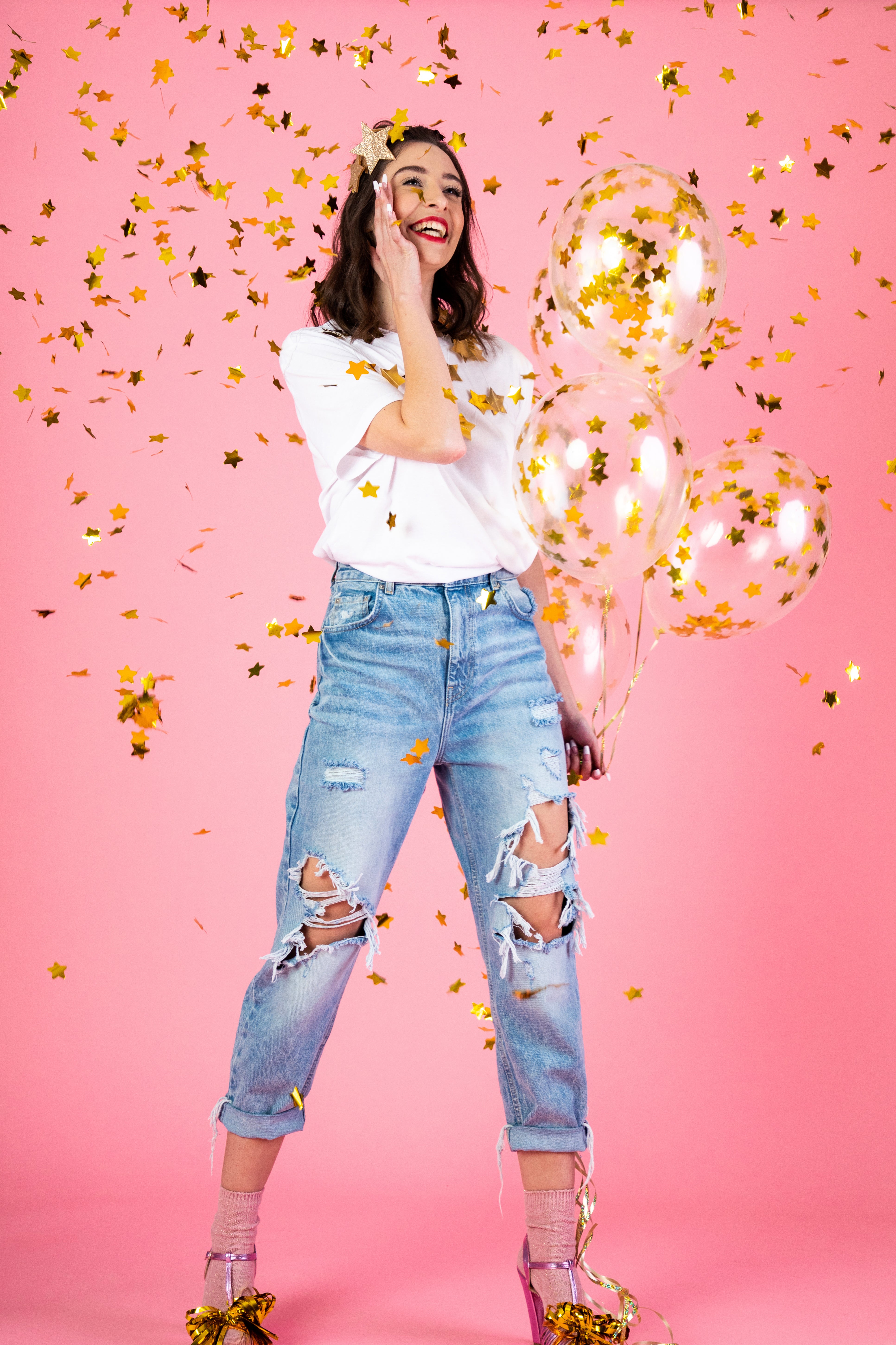 Blöðrur með confetti - Gegnsæjar - Gylltar stjörnur - 30 cm - 6 stk